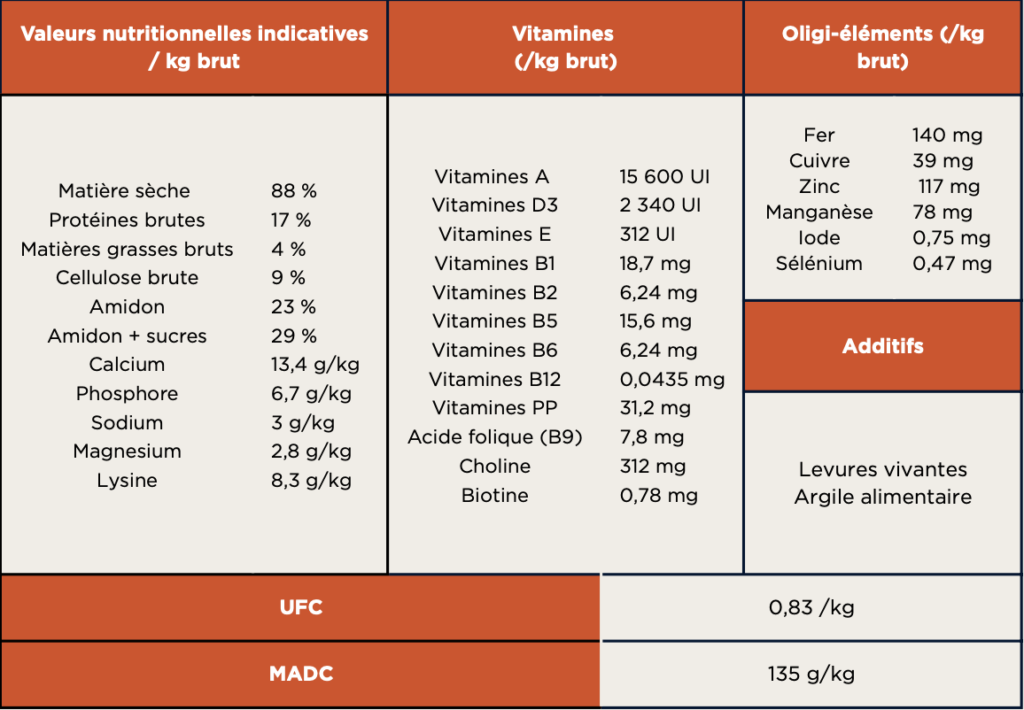 Source de vitamines A et E qui interviennent dans la reproduction, conformément aux recommandations de l’INRAE ou du NRC